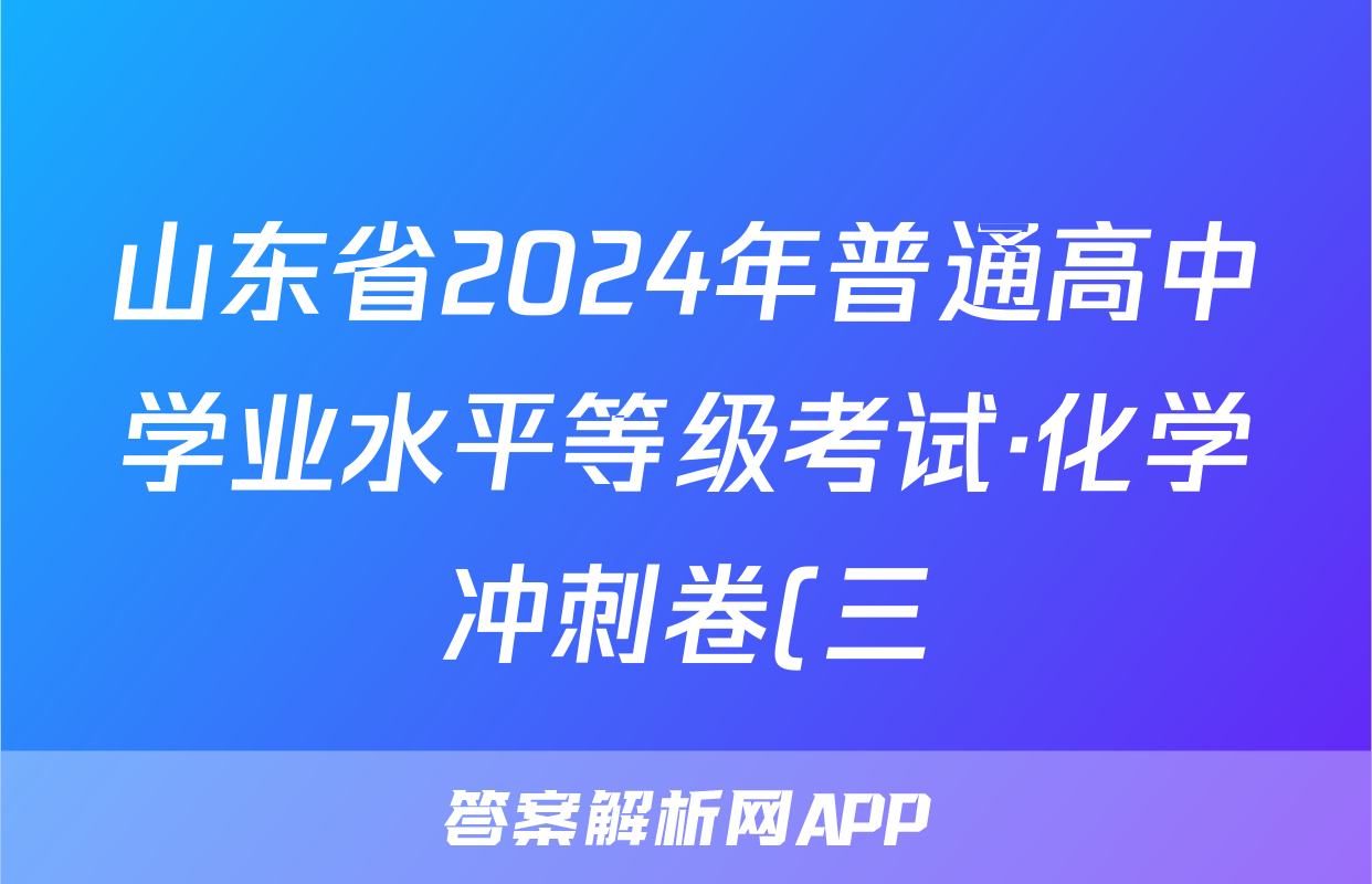 山东省2024年普通高中学业水平等级考试·化学冲刺卷(三)3[24·(新高考)CCJ·化学·SD]试题正在持续更新,目前2024-2025衡中同卷答案网为大家整理了相关试题及答案,供大家查缺补漏,高效提升成绩。