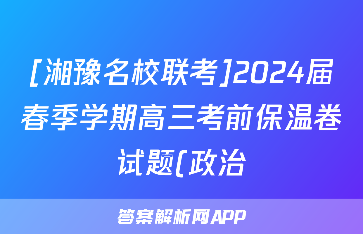 [湘豫名校联考]2024届春季学期高三考前保温卷试题(政治)正在持续更新,目前2024-2025衡中同卷答案网为大家整理了相关试题及答案,供大家查缺补漏,高效提升成绩。