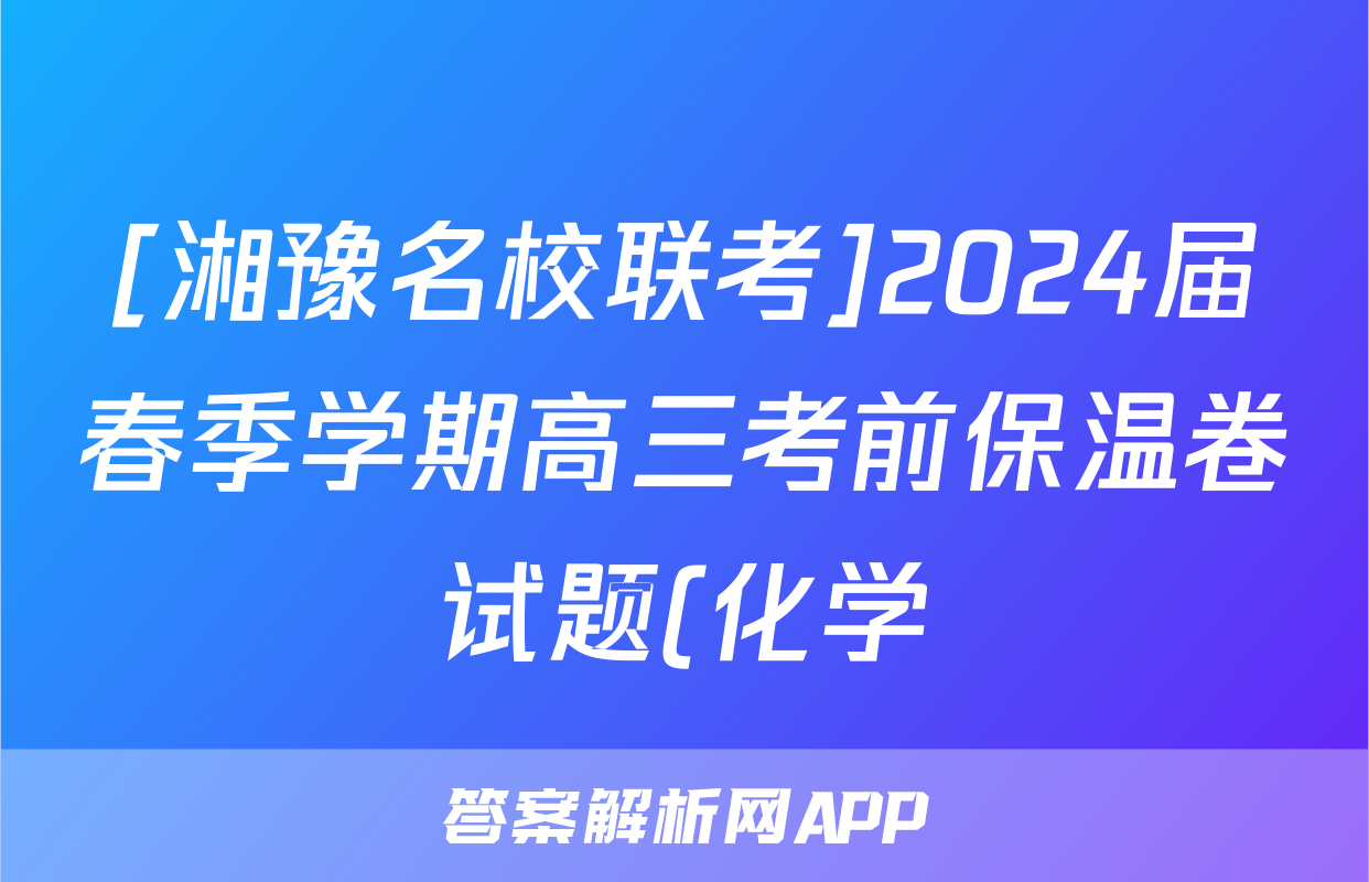 [湘豫名校联考]2024届春季学期高三考前保温卷试题(化学)正在持续更新,目前2024-2025衡中同卷答案网为大家整理了相关试题及答案,供大家查缺补漏,高效提升成绩。