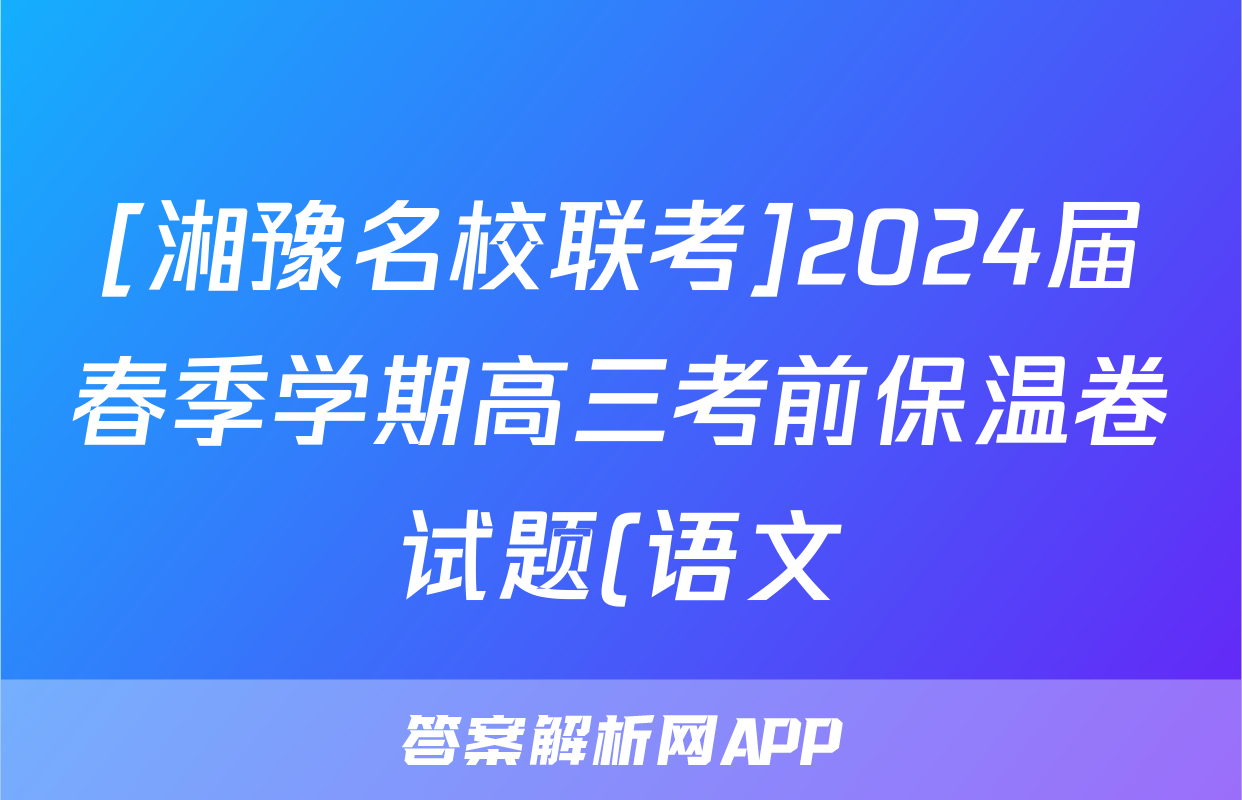 [湘豫名校联考]2024届春季学期高三考前保温卷试题(语文)正在持续更新,目前2024-2025衡中同卷答案网为大家整理了相关试题及答案,供大家查缺补漏,高效提升成绩。