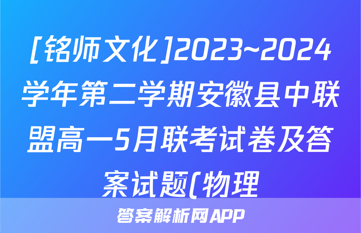 [铭师文化]2023~2024学年第二学期安徽县中联盟高一5月联考试卷及答案试题(物理)正在持续更新,目前2024-2025衡中同卷答案网为大家整理了相关试题及答案,供大家查缺补漏,高效提升成绩。