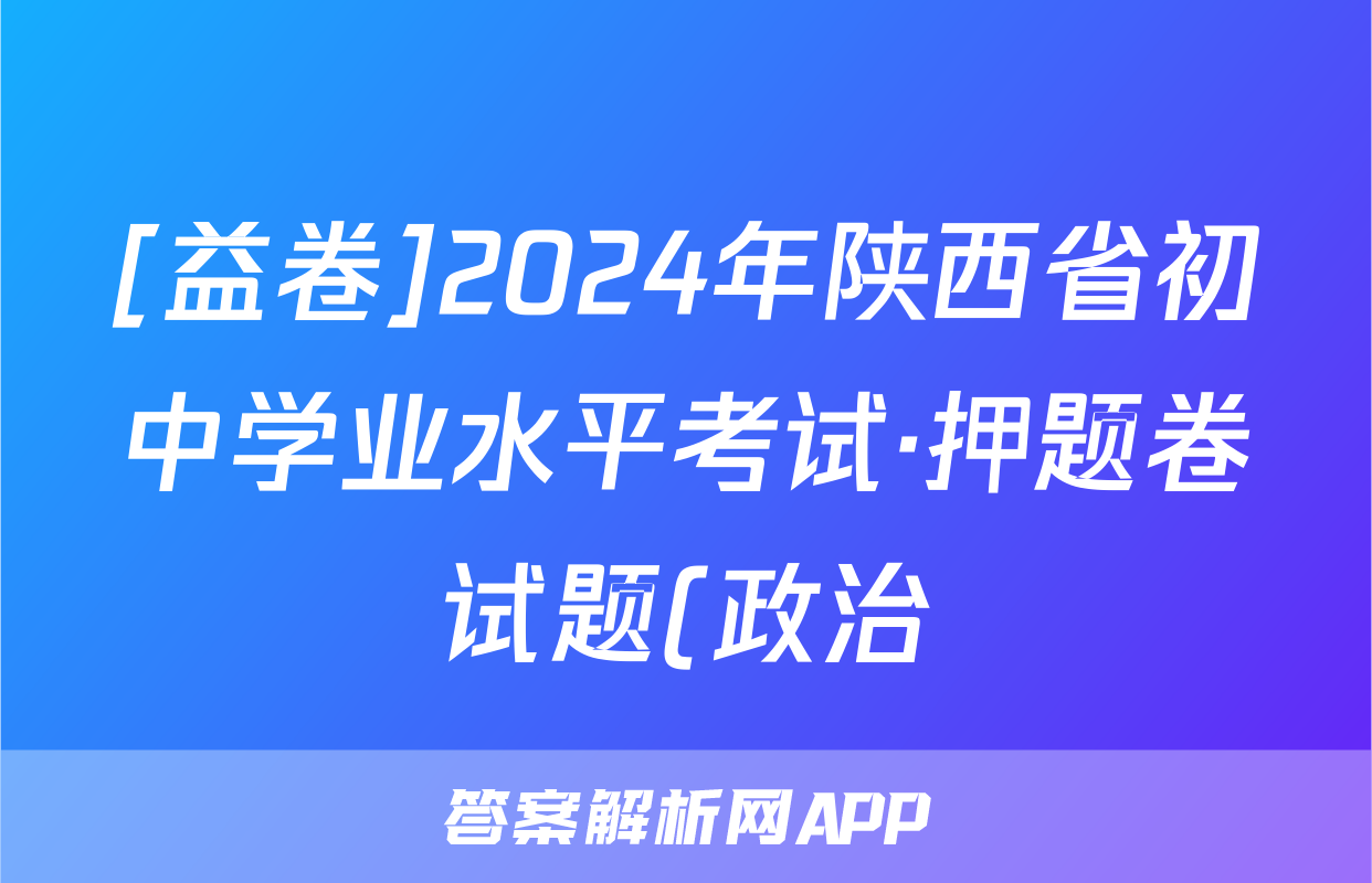 [益卷]2024年陕西省初中学业水平考试·押题卷试题(政治)正在持续更新,目前2024-2025衡中同卷答案网为大家整理了相关试题及答案,供大家查缺补漏,高效提升成绩。