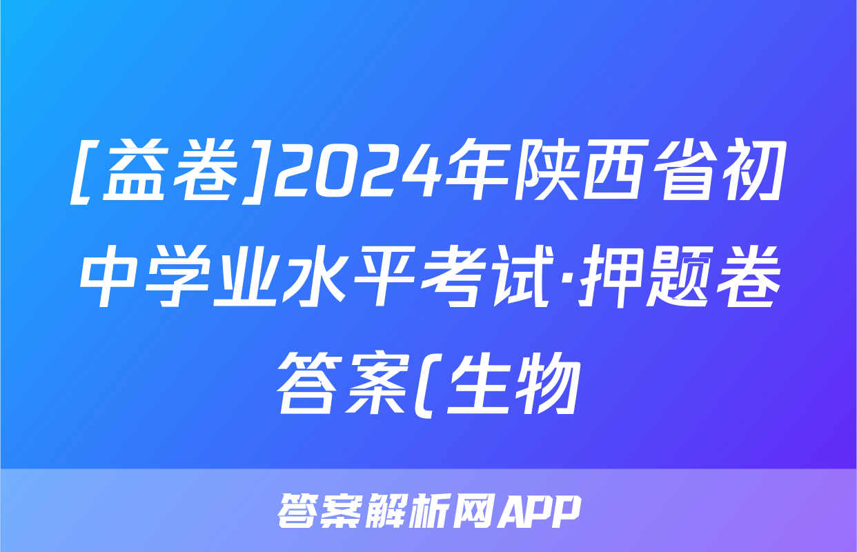 [益卷]2024年陕西省初中学业水平考试·押题卷答案(生物)正在持续更新,目前2024-2025衡中同卷答案网为大家整理了相关试题及答案,供大家查缺补漏,高效提升成绩。