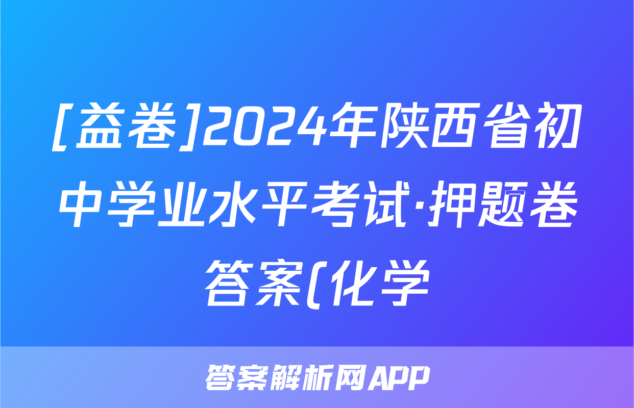 [益卷]2024年陕西省初中学业水平考试·押题卷答案(化学)正在持续更新,目前2024-2025衡中同卷答案网为大家整理了相关试题及答案,供大家查缺补漏,高效提升成绩。