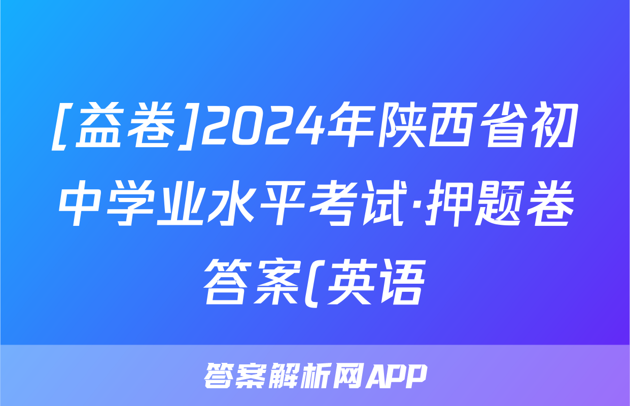 [益卷]2024年陕西省初中学业水平考试·押题卷答案(英语)正在持续更新,目前2024-2025衡中同卷答案网为大家整理了相关试题及答案,供大家查缺补漏,高效提升成绩。