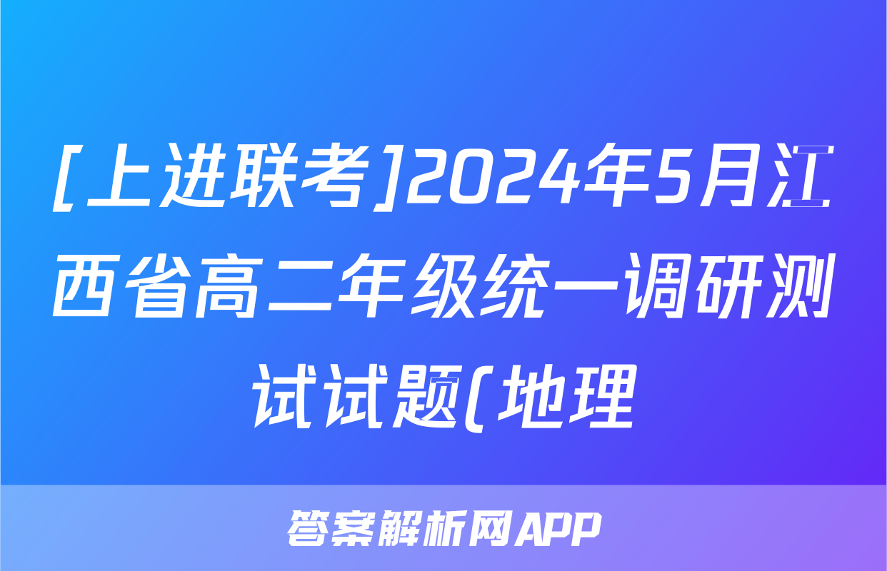 [上进联考]2024年5月江西省高二年级统一调研测试试题(地理)正在持续更新,目前2024-2025衡中同卷答案网为大家整理了相关试题及答案,供大家查缺补漏,高效提升成绩。