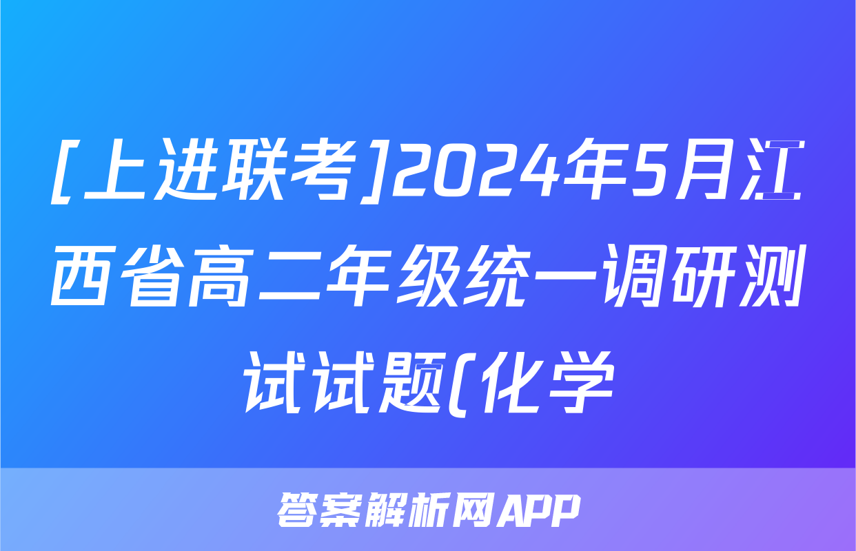 [上进联考]2024年5月江西省高二年级统一调研测试试题(化学)正在持续更新,目前2024-2025衡中同卷答案网为大家整理了相关试题及答案,供大家查缺补漏,高效提升成绩。