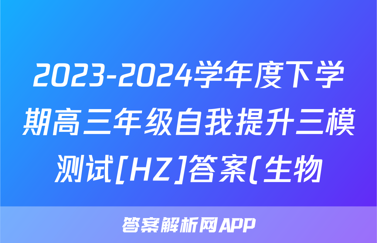 2023-2024学年度下学期高三年级自我提升三模测试[HZ]答案(生物)正在持续更新,目前2024-2025衡中同卷答案网为大家整理了相关试题及答案,供大家查缺补漏,高效提升成绩。