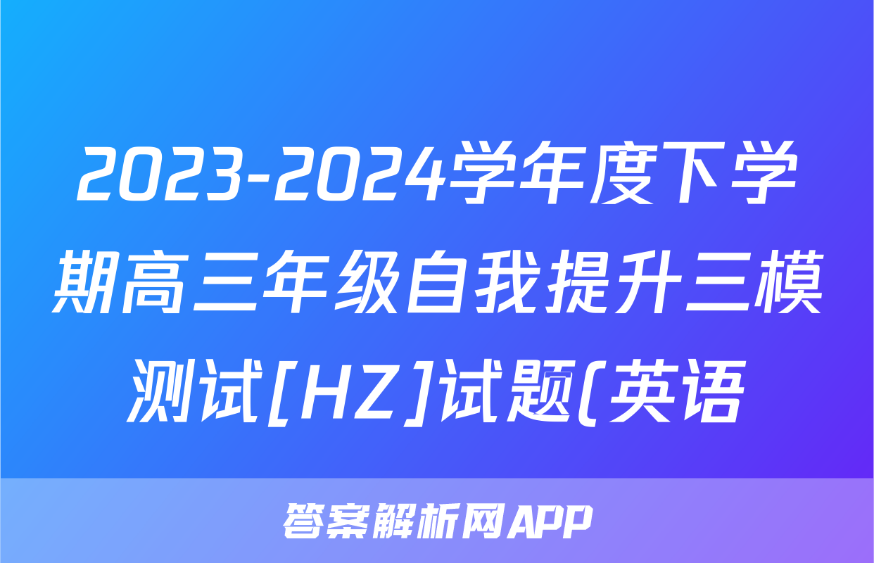 2023-2024学年度下学期高三年级自我提升三模测试[HZ]试题(英语)正在持续更新,目前2024-2025衡中同卷答案网为大家整理了相关试题及答案,供大家查缺补漏,高效提升成绩。