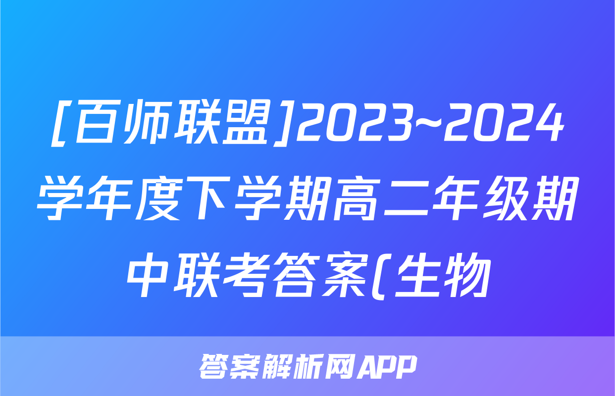 [百师联盟]2023~2024学年度下学期高二年级期中联考答案(生物)正在持续更新,目前2024-2025衡中同卷答案网为大家整理了相关试题及答案,供大家查缺补漏,高效提升成绩。