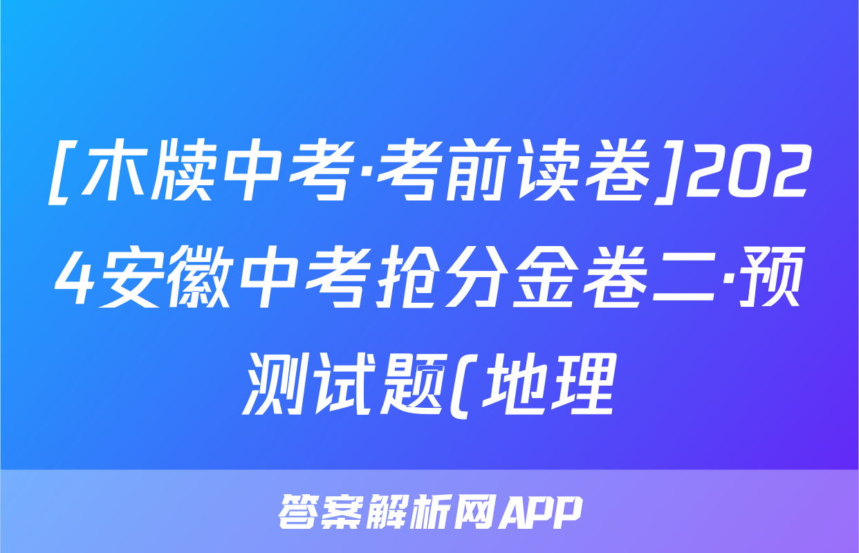 [木牍中考·考前读卷]2024安徽中考抢分金卷二·预测试题(地理)正在持续更新,目前2024-2025衡中同卷答案网为大家整理了相关试题及答案,供大家查缺补漏,高效提升成绩。