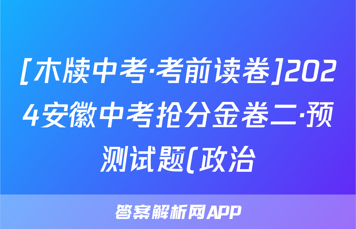 [木牍中考·考前读卷]2024安徽中考抢分金卷二·预测试题(政治)正在持续更新,目前2024-2025衡中同卷答案网为大家整理了相关试题及答案,供大家查缺补漏,高效提升成绩。