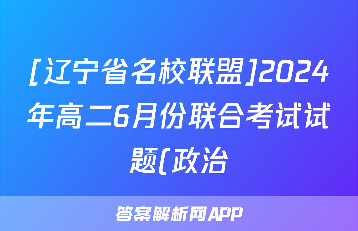 [辽宁省名校联盟]2024年高二6月份联合考试试题(政治)正在持续更新,目前2024-2025衡中同卷答案网为大家整理了相关试题及答案,供大家查缺补漏,高效提升成绩。