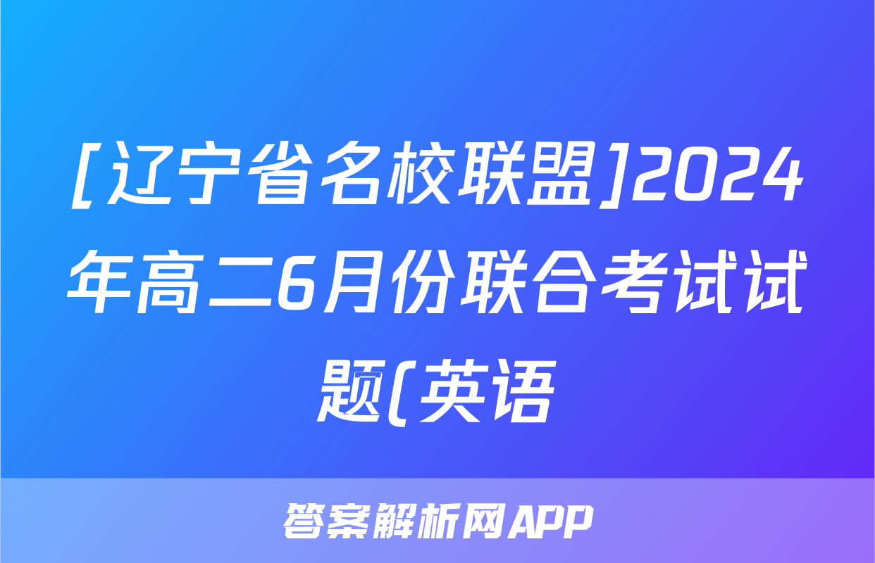 [辽宁省名校联盟]2024年高二6月份联合考试试题(英语)正在持续更新,目前2024-2025衡中同卷答案网为大家整理了相关试题及答案,供大家查缺补漏,高效提升成绩。