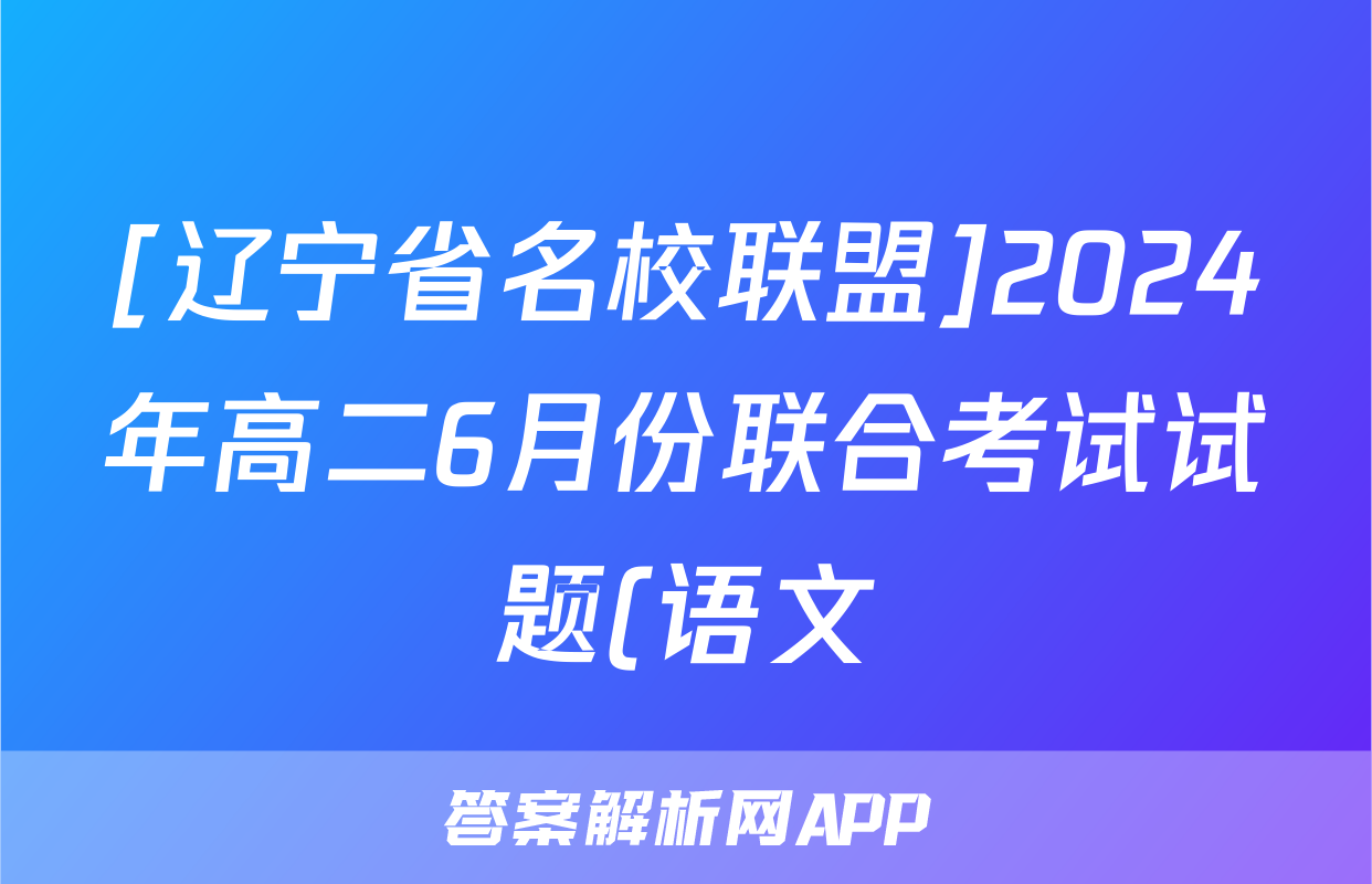 [辽宁省名校联盟]2024年高二6月份联合考试试题(语文)正在持续更新,目前2024-2025衡中同卷答案网为大家整理了相关试题及答案,供大家查缺补漏,高效提升成绩。