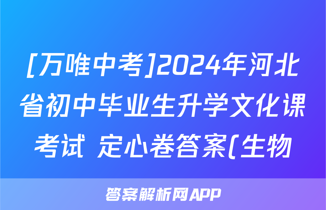 [万唯中考]2024年河北省初中毕业生升学文化课考试 定心卷答案(生物)正在持续更新,目前2024-2025衡中同卷答案网为大家整理了相关试题及答案,供大家查缺补漏,高效提升成绩。
