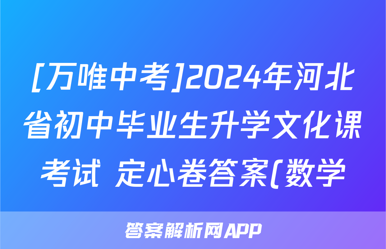 [万唯中考]2024年河北省初中毕业生升学文化课考试 定心卷答案(数学)正在持续更新,目前2024-2025衡中同卷答案网为大家整理了相关试题及答案,供大家查缺补漏,高效提升成绩。