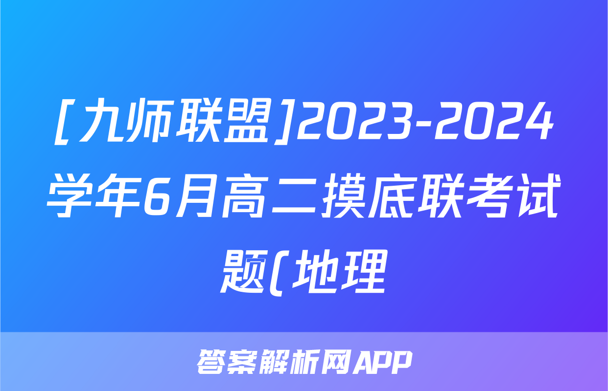 [九师联盟]2023-2024学年6月高二摸底联考试题(地理)正在持续更新,目前2024-2025衡中同卷答案网为大家整理了相关试题及答案,供大家查缺补漏,高效提升成绩。