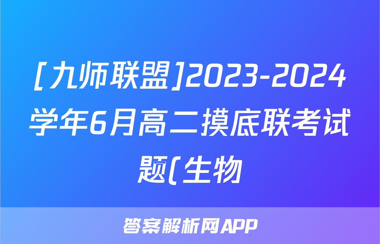 [九师联盟]2023-2024学年6月高二摸底联考试题(生物)正在持续更新,目前2024-2025衡中同卷答案网为大家整理了相关试题及答案,供大家查缺补漏,高效提升成绩。