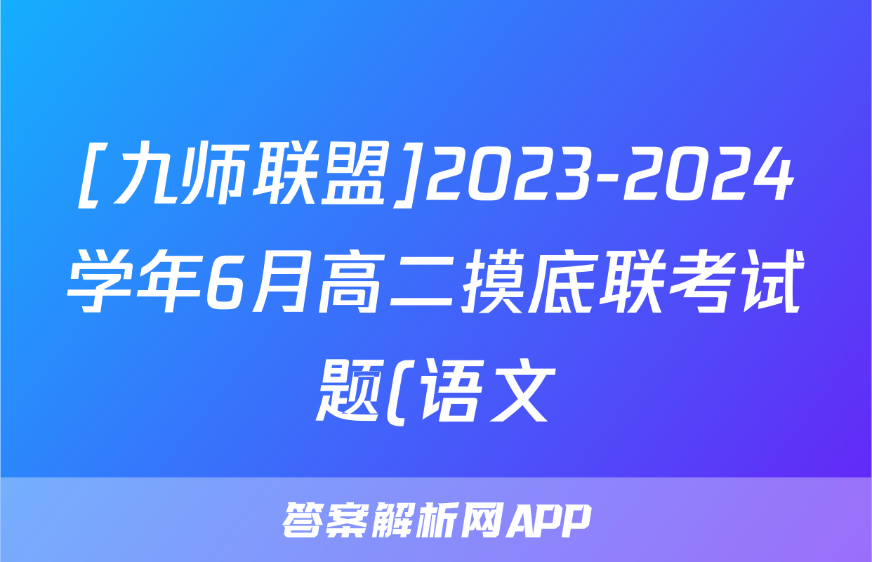 [九师联盟]2023-2024学年6月高二摸底联考试题(语文)正在持续更新,目前2024-2025衡中同卷答案网为大家整理了相关试题及答案,供大家查缺补漏,高效提升成绩。