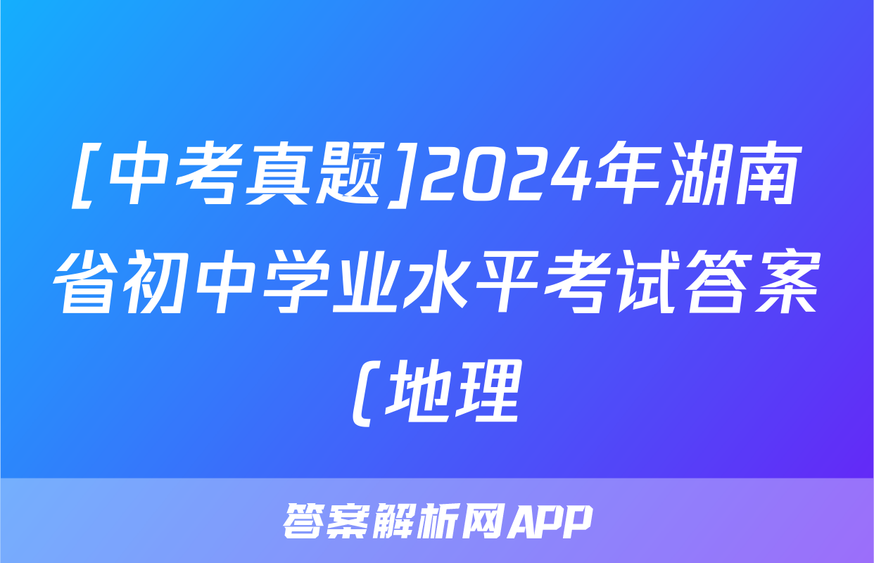 [中考真题]2024年湖南省初中学业水平考试答案(地理)正在持续更新,目前2024-2025衡中同卷答案网为大家整理了相关试题及答案,供大家查缺补漏,高效提升成绩。