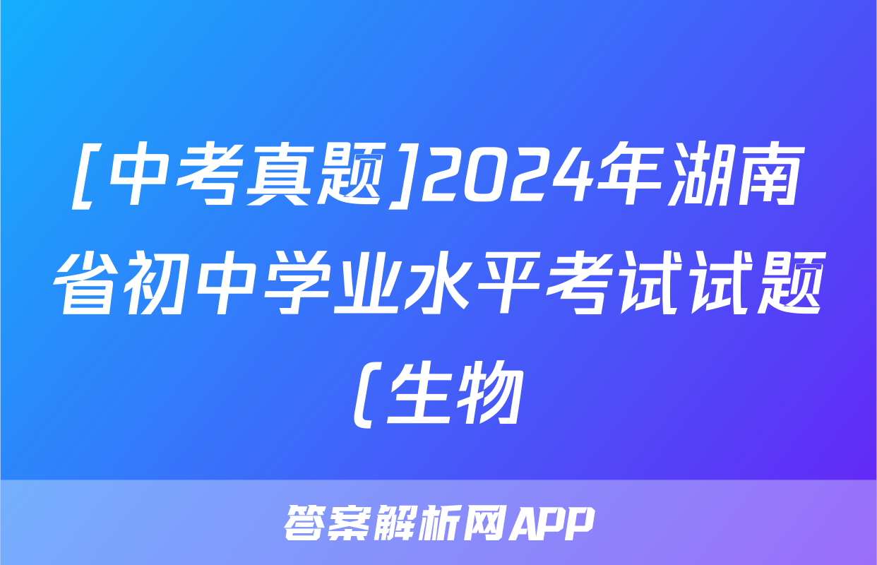 [中考真题]2024年湖南省初中学业水平考试试题(生物)正在持续更新,目前2024-2025衡中同卷答案网为大家整理了相关试题及答案,供大家查缺补漏,高效提升成绩。