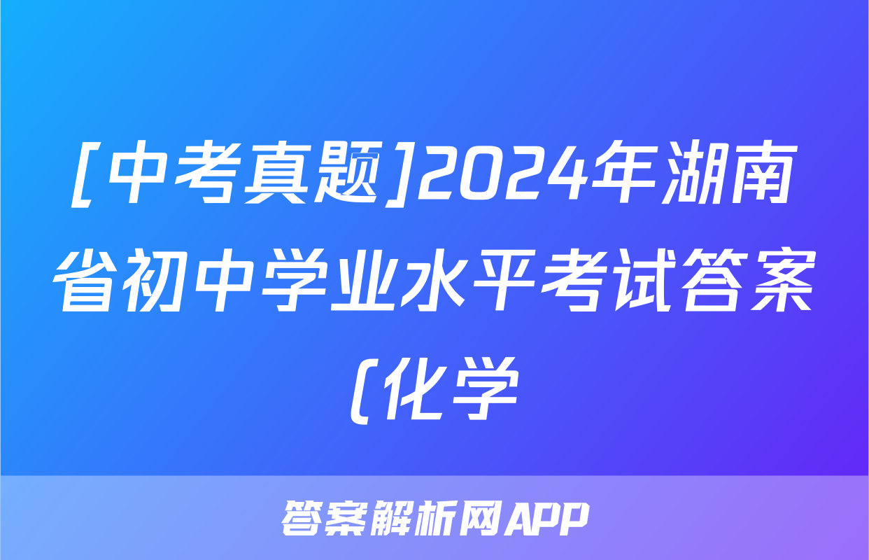 [中考真题]2024年湖南省初中学业水平考试答案(化学)正在持续更新,目前2024-2025衡中同卷答案网为大家整理了相关试题及答案,供大家查缺补漏,高效提升成绩。