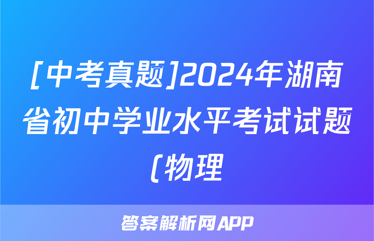 [中考真题]2024年湖南省初中学业水平考试试题(物理)正在持续更新,目前2024-2025衡中同卷答案网为大家整理了相关试题及答案,供大家查缺补漏,高效提升成绩。