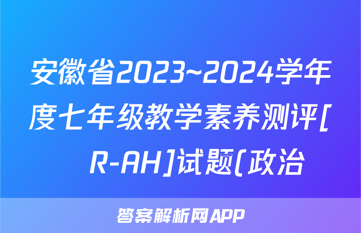 安徽省2023~2024学年度七年级教学素养测评[☐R-AH]试题(政治)正在持续更新,目前2024-2025衡中同卷答案网为大家整理了相关试题及答案,供大家查缺补漏,高效提升成绩。