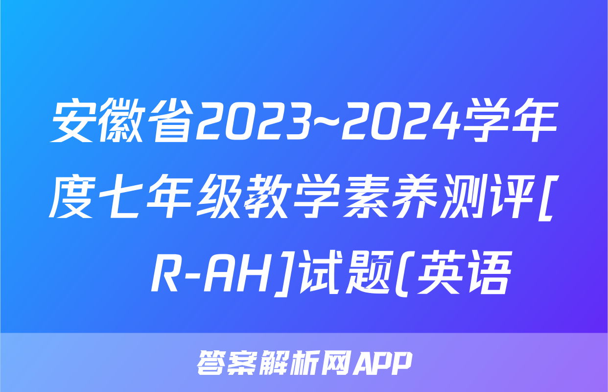 安徽省2023~2024学年度七年级教学素养测评[☐R-AH]试题(英语)正在持续更新,目前2024-2025衡中同卷答案网为大家整理了相关试题及答案,供大家查缺补漏,高效提升成绩。