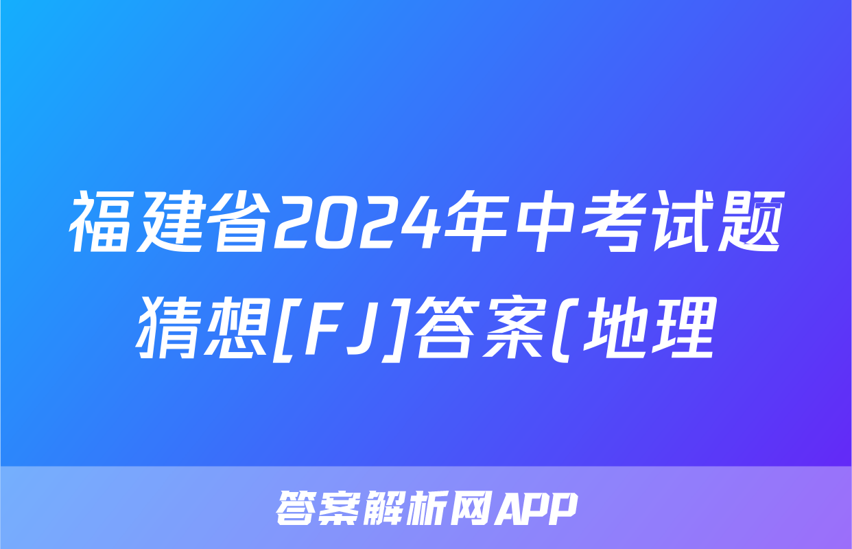 福建省2024年中考试题猜想[FJ]答案(地理)正在持续更新,目前2024-2025衡中同卷答案网为大家整理了相关试题及答案,供大家查缺补漏,高效提升成绩。