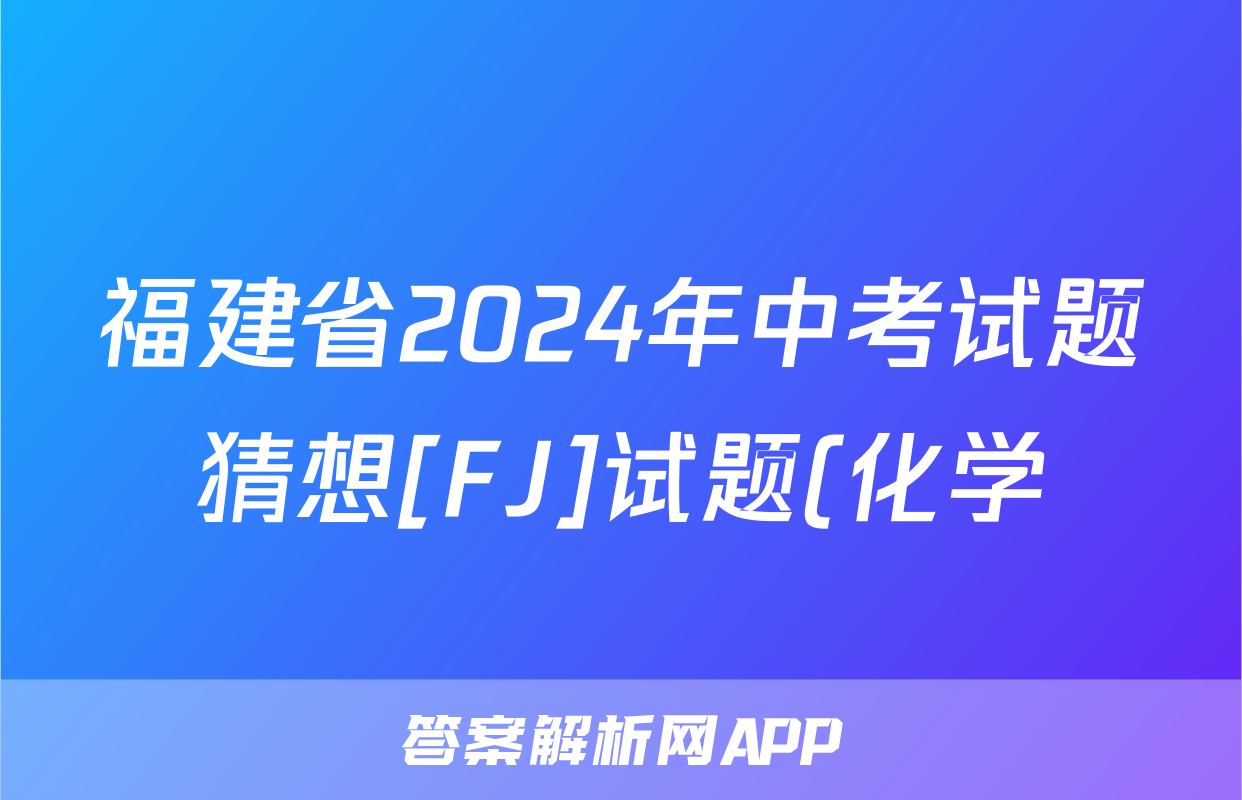 福建省2024年中考试题猜想[FJ]试题(化学)正在持续更新,目前2024-2025衡中同卷答案网为大家整理了相关试题及答案,供大家查缺补漏,高效提升成绩。