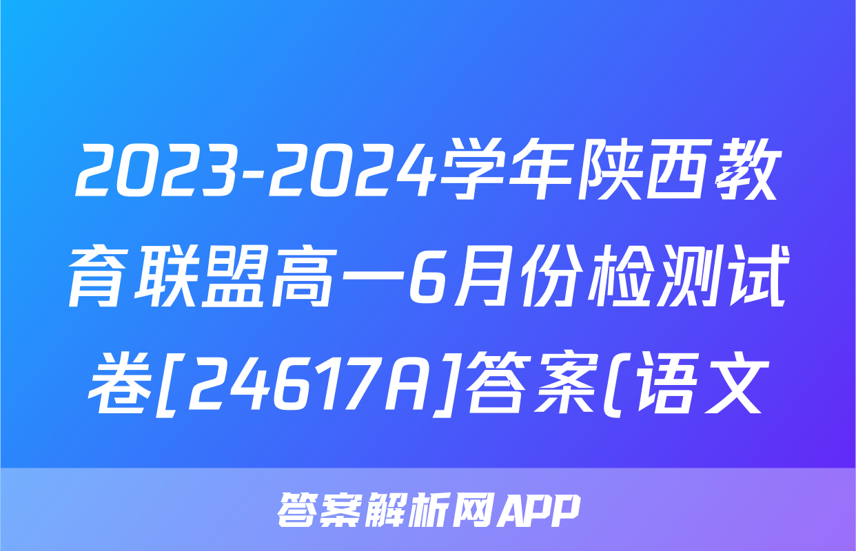 2023-2024学年陕西教育联盟高一6月份检测试卷[24617A]答案(语文)正在持续更新,目前2024-2025衡中同卷答案网为大家整理了相关试题及答案,供大家查缺补漏,高效提升成绩。