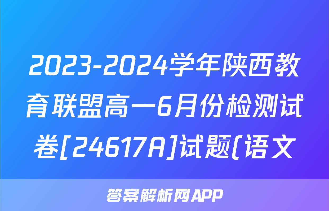 2023-2024学年陕西教育联盟高一6月份检测试卷[24617A]试题(语文)正在持续更新,目前2024-2025衡中同卷答案网为大家整理了相关试题及答案,供大家查缺补漏,高效提升成绩。