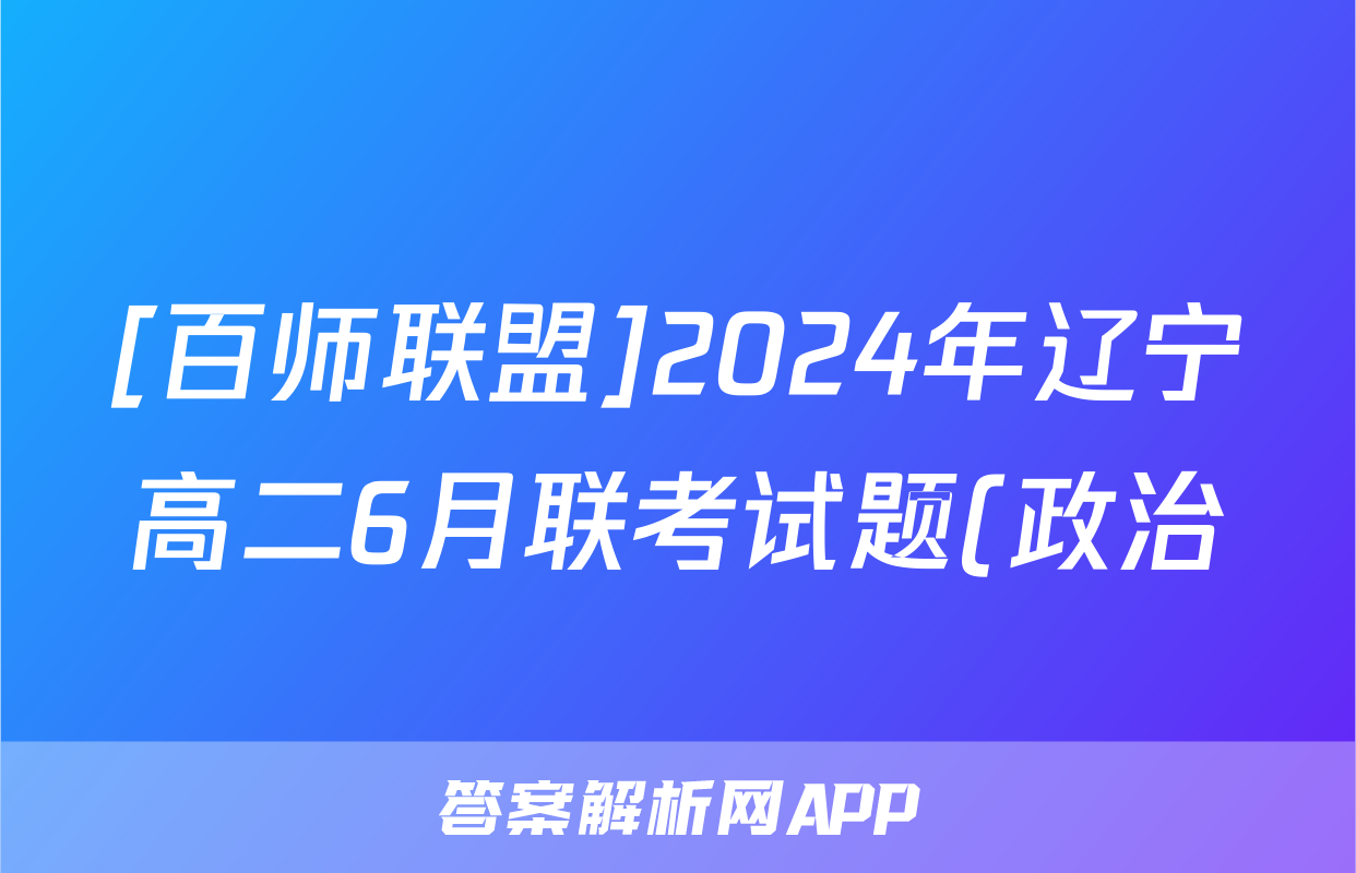 [百师联盟]2024年辽宁高二6月联考试题(政治)正在持续更新,目前2024-2025衡中同卷答案网为大家整理了相关试题及答案,供大家查缺补漏,高效提升成绩。