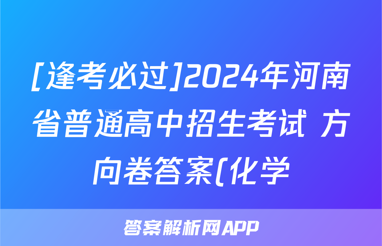 [逢考必过]2024年河南省普通高中招生考试 方向卷答案(化学)正在持续更新,目前2024-2025衡中同卷答案网为大家整理了相关试题及答案,供大家查缺补漏,高效提升成绩。
