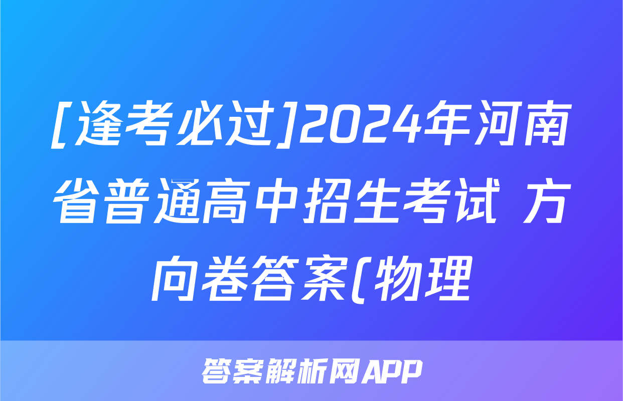 [逢考必过]2024年河南省普通高中招生考试 方向卷答案(物理)正在持续更新,目前2024-2025衡中同卷答案网为大家整理了相关试题及答案,供大家查缺补漏,高效提升成绩。
