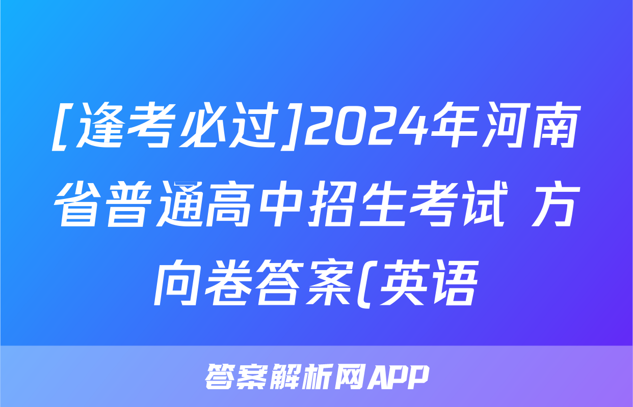 [逢考必过]2024年河南省普通高中招生考试 方向卷答案(英语)正在持续更新,目前2024-2025衡中同卷答案网为大家整理了相关试题及答案,供大家查缺补漏,高效提升成绩。
