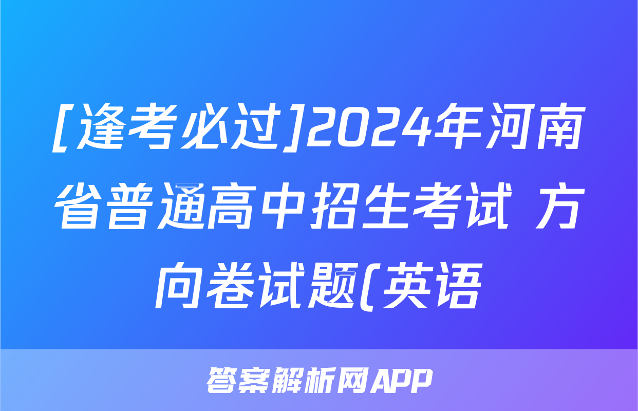 [逢考必过]2024年河南省普通高中招生考试 方向卷试题(英语)正在持续更新,目前2024-2025衡中同卷答案网为大家整理了相关试题及答案,供大家查缺补漏,高效提升成绩。