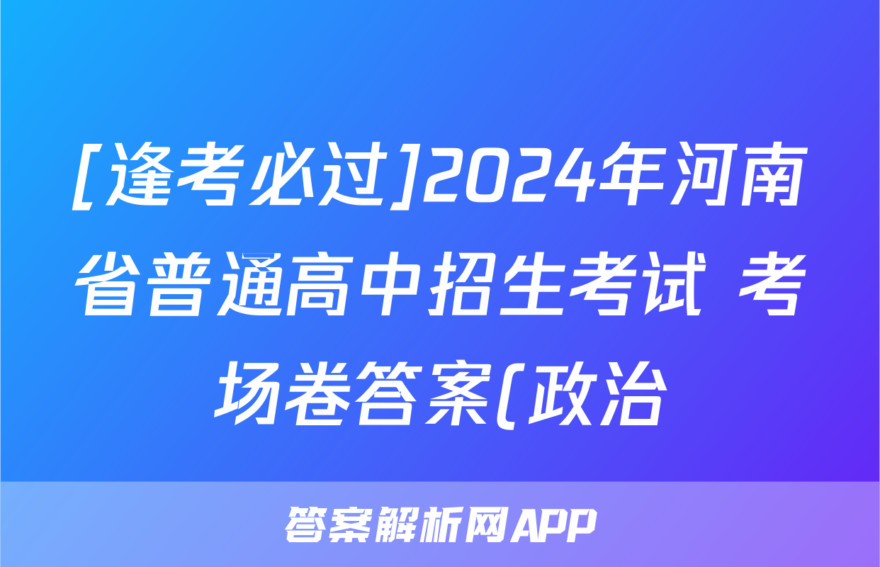 [逢考必过]2024年河南省普通高中招生考试 考场卷答案(政治)正在持续更新,目前2024-2025衡中同卷答案网为大家整理了相关试题及答案,供大家查缺补漏,高效提升成绩。