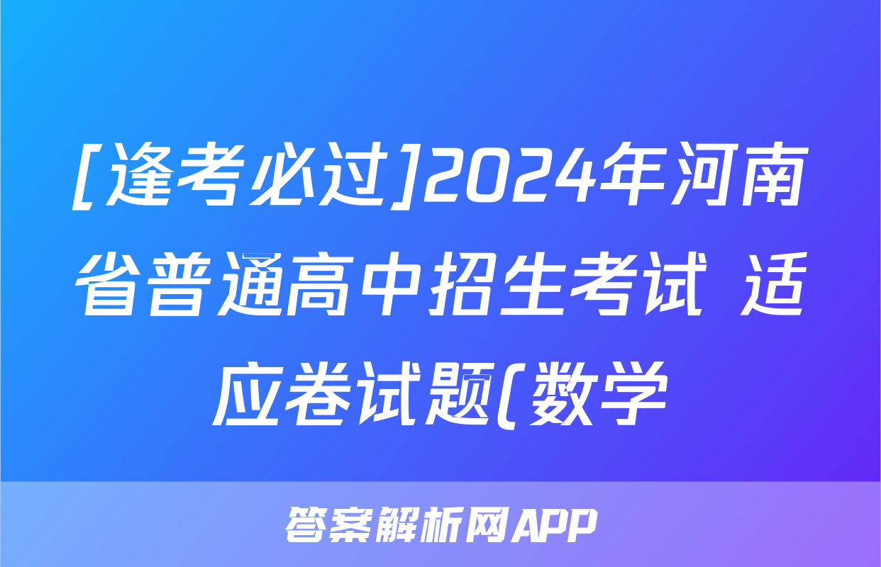 [逢考必过]2024年河南省普通高中招生考试 适应卷试题(数学)正在持续更新,目前2024-2025衡中同卷答案网为大家整理了相关试题及答案,供大家查缺补漏,高效提升成绩。