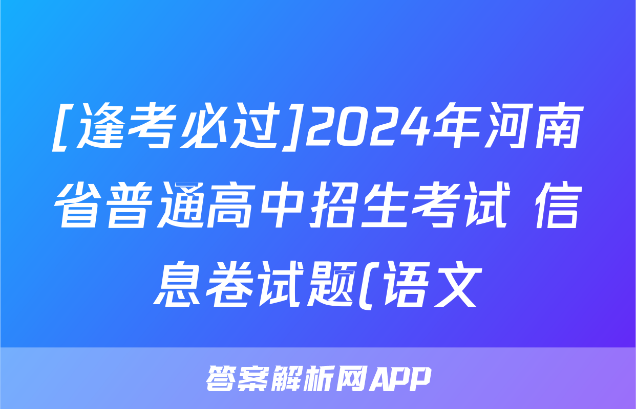 [逢考必过]2024年河南省普通高中招生考试 信息卷试题(语文)正在持续更新,目前2024-2025衡中同卷答案网为大家整理了相关试题及答案,供大家查缺补漏,高效提升成绩。