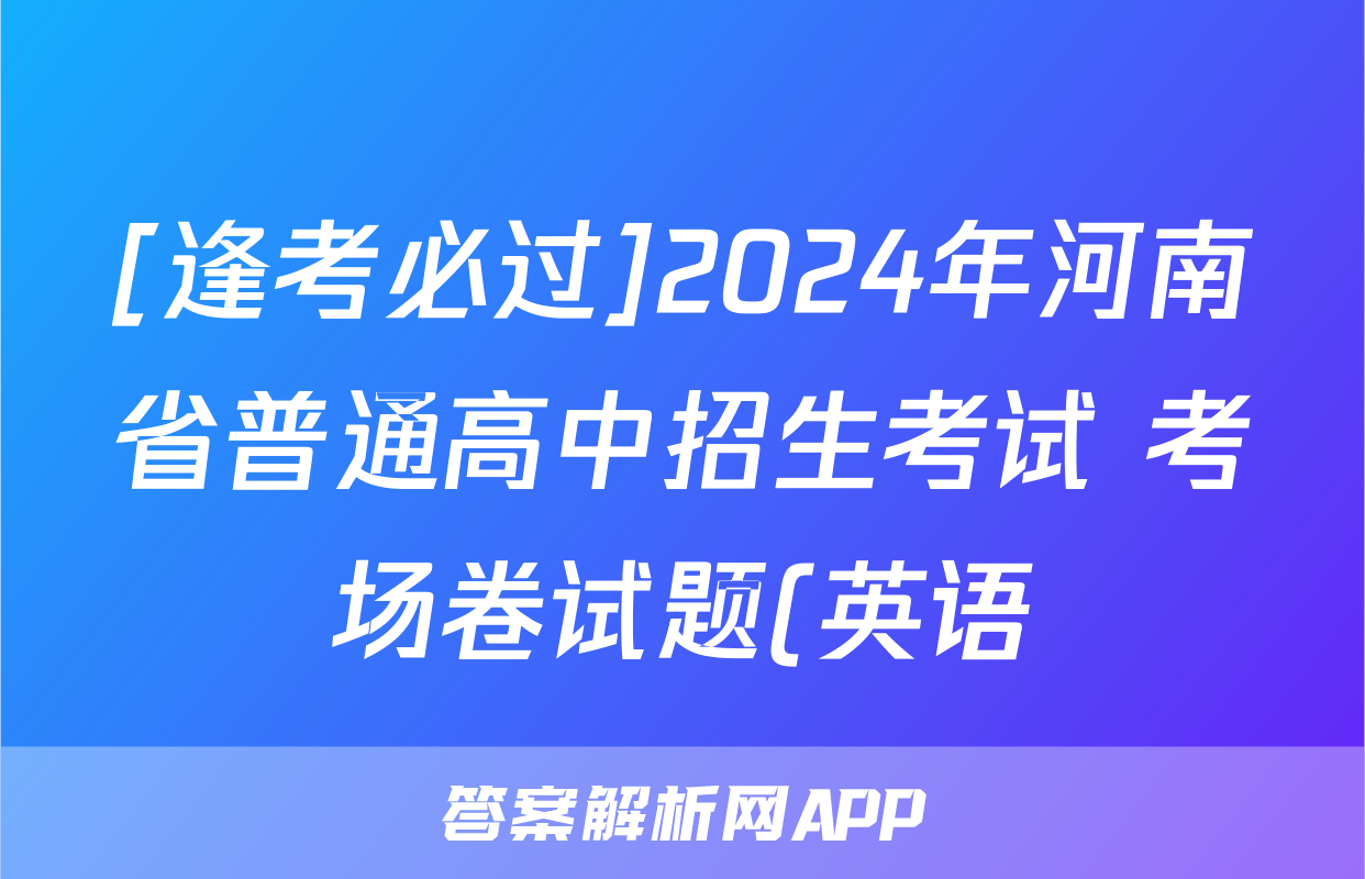 [逢考必过]2024年河南省普通高中招生考试 考场卷试题(英语)正在持续更新,目前2024-2025衡中同卷答案网为大家整理了相关试题及答案,供大家查缺补漏,高效提升成绩。