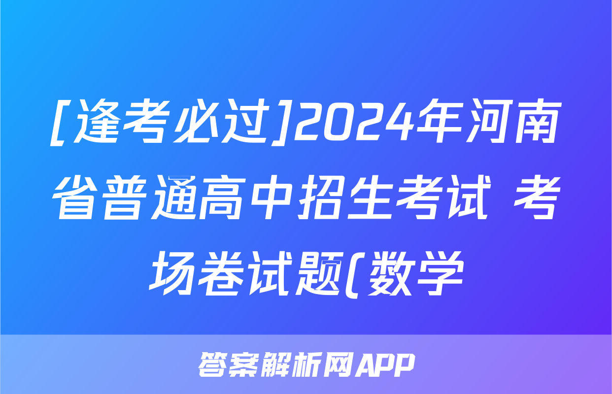 [逢考必过]2024年河南省普通高中招生考试 考场卷试题(数学)正在持续更新,目前2024-2025衡中同卷答案网为大家整理了相关试题及答案,供大家查缺补漏,高效提升成绩。