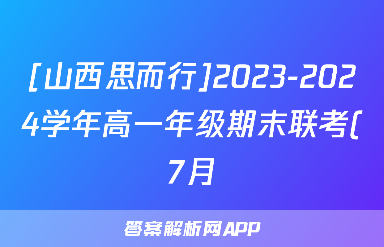 [山西思而行]2023-2024学年高一年级期末联考(7月)语文试题正在持续更新,目前2024-2025衡中同卷答案网为大家整理了相关试题及答案,供大家查缺补漏,高效提升成绩。