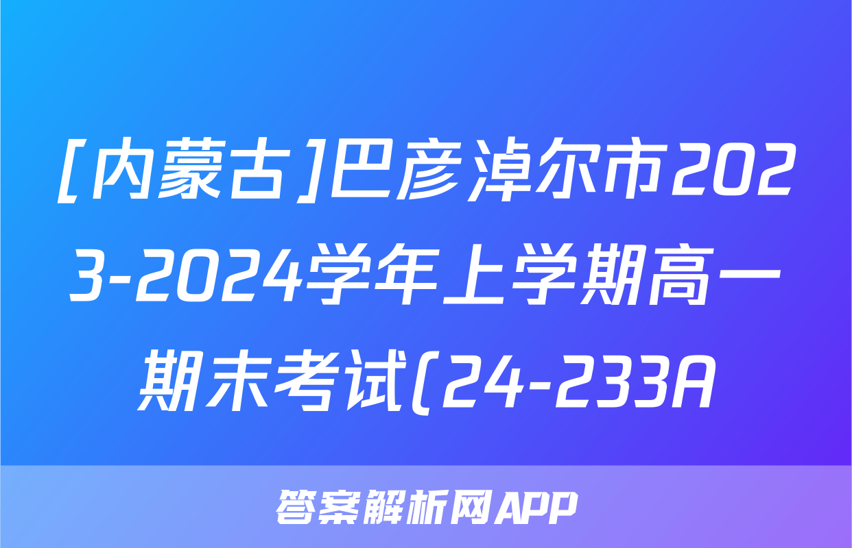 [内蒙古]巴彦淖尔市2023-2024学年上学期高一期末考试(24-233A)化学试题正在持续更新,目前2024-2025衡中同卷答案网为大家整理了相关试题及答案,供大家查缺补漏,高效提升成绩。