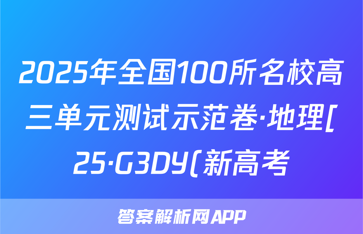 2025年全国100所名校高三单元测试示范卷·地理[25·G3DY(新高考)·地理-XJB-必考-QG](二)答案正在持续更新,目前2024-2025衡中同卷答案网为大家整理了相关试题及答案,供大家查缺补漏,高效提升成绩。