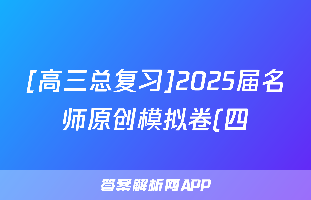 [高三总复习]2025届名师原创模拟卷(四)4英语(XS5)答案正在持续更新,目前2024-2025衡中同卷答案网为大家整理了相关试题及答案,供大家查缺补漏,高效提升成绩。