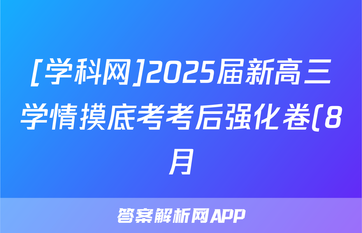 [学科网]2025届新高三学情摸底考考后强化卷(8月)历史(新高考卷)答案正在持续更新,目前2024-2025衡中同卷答案网为大家整理了相关试题及答案,供大家查缺补漏,高效提升成绩。