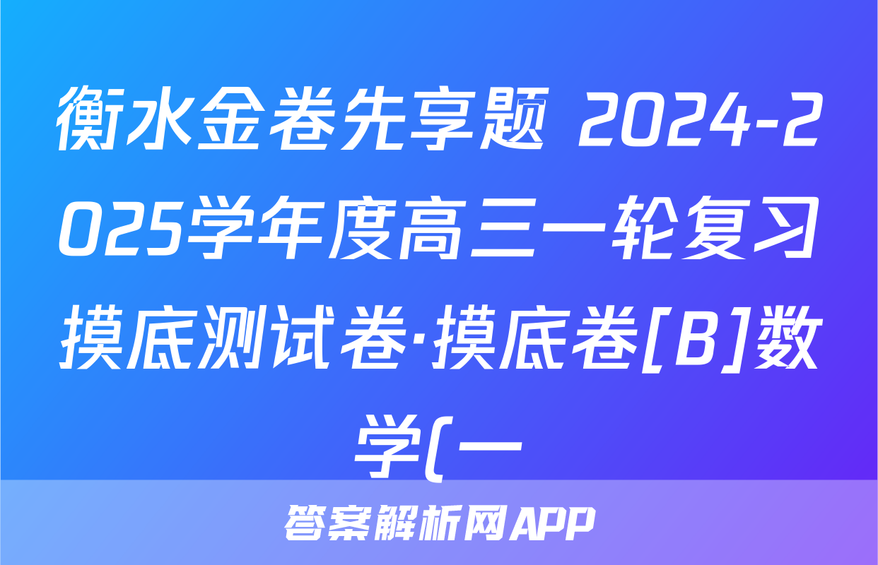 衡水金卷先享题 2024-2025学年度高三一轮复习摸底测试卷·摸底卷[B]数学(一)1答案正在持续更新,目前2024-2025衡中同卷答案网为大家整理了相关试题及答案,供大家查缺补漏,高效提升成绩。